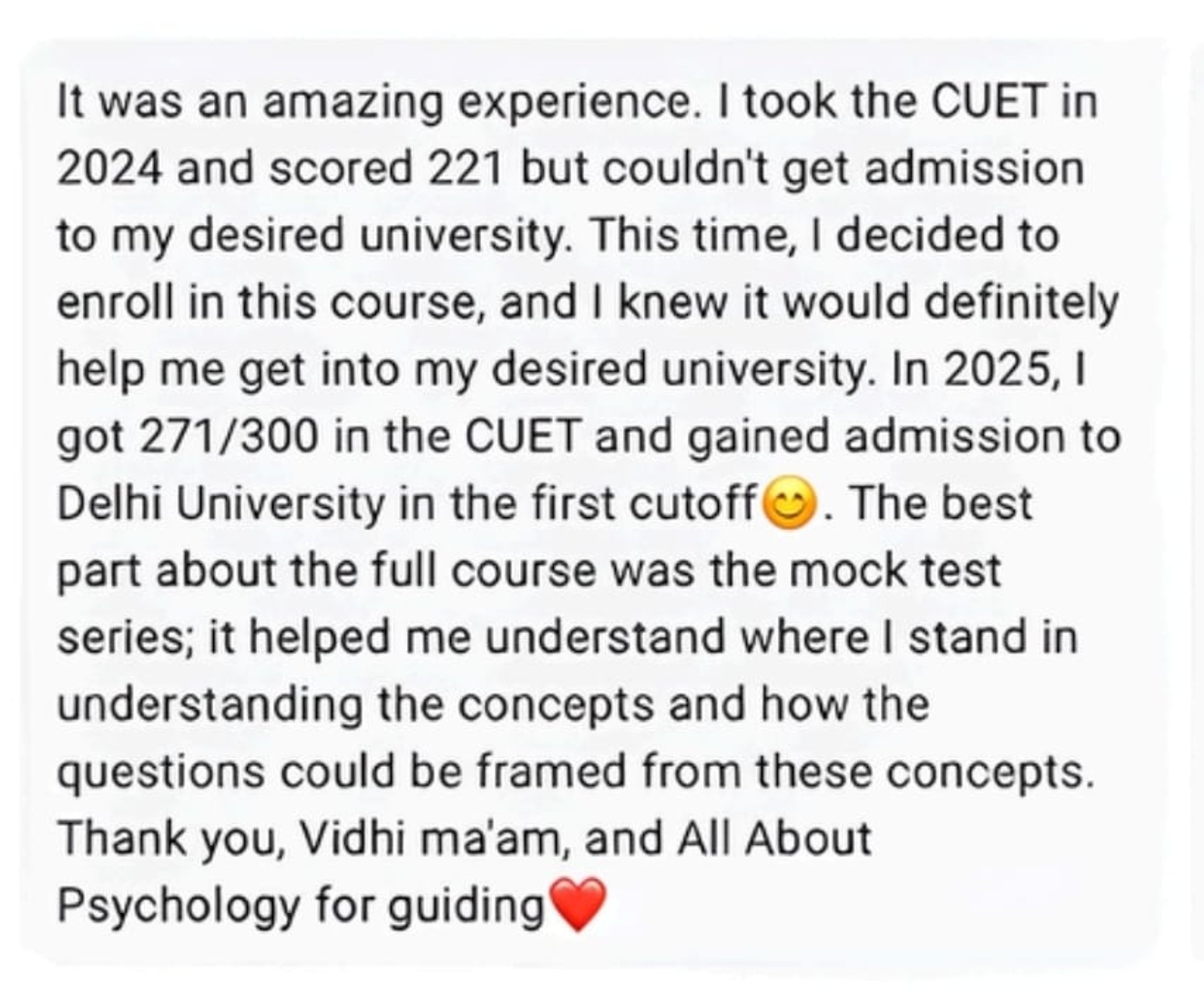 With an experience of mentoring and teaching 1000+ students over the past 3.5 years, she has not only been offered admissions into universities like DU, AUD, BHU, Christ and MAHE, Manipal herself, but also guided multiple of her students into the same.