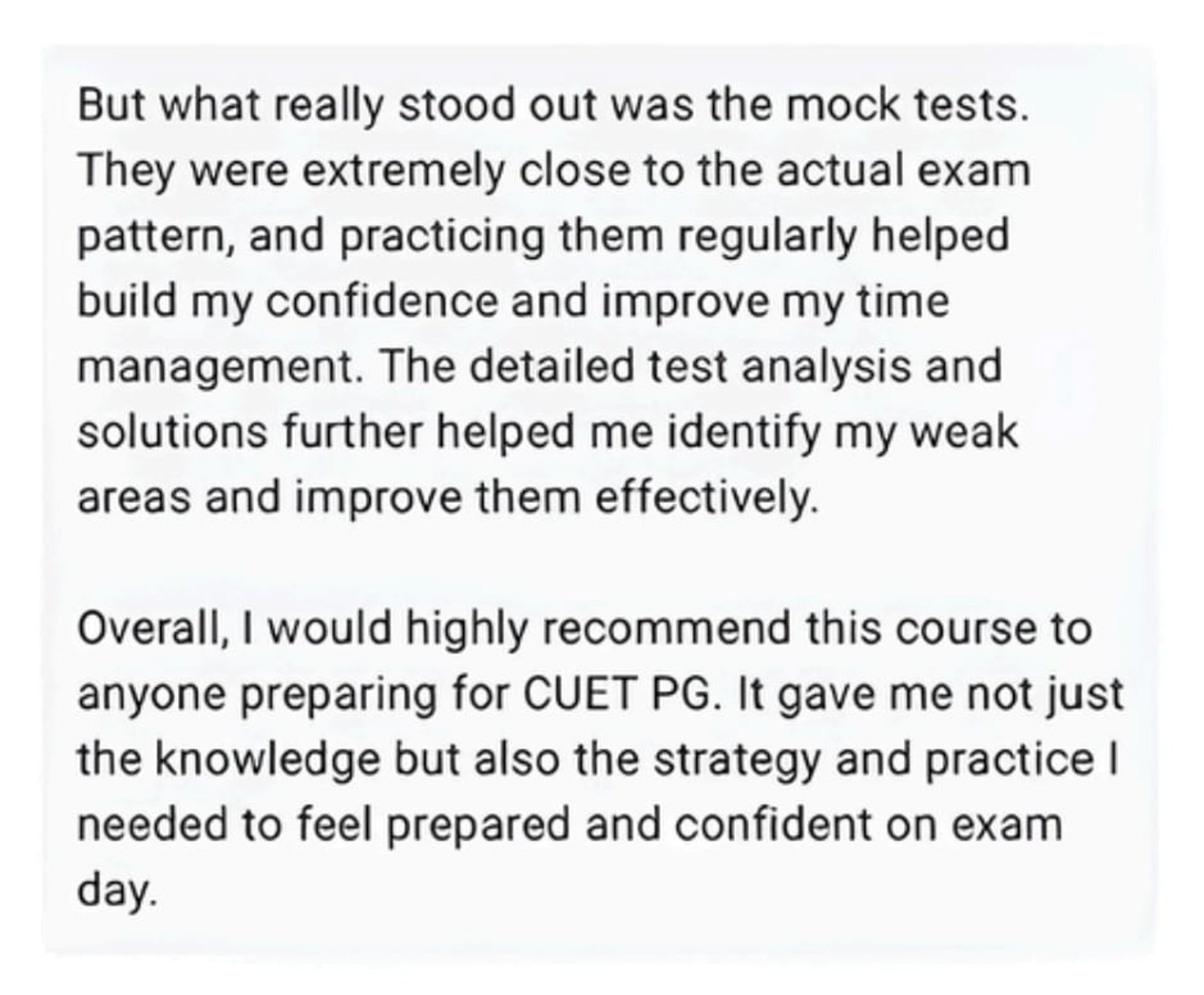 Our 15 mock tests offer the same interface as the CUET PG exam, giving you a similar test experience to build confidence.
