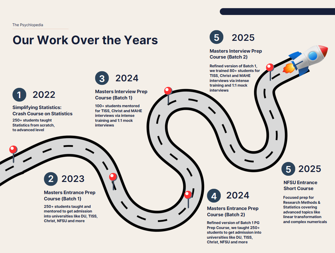 Psychlopedia is a venture started to help psychology students navigate their entrance and interview preparation journey with greater clarity, direction & guidance from mentors who have successfully cleared these exams themselves and who walk with you through every step of your journey.